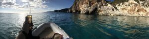 Přejíždíš z pláže na pláž, koupeš se, šnorchluješ, opaluješ, lovíš ryby, prozkoumáváš jeskyně a když si sebou vezmeš cajky na lezení, užiješ si i lezení. Člun s výkonem čtyřiceti koní stojí od nějakých 100 eur na den a nepotřebuješ žádnou licenci. Na sto koní už papíry mít musíš a zaplatíš skoro dvojnásobek, ale musím říct, že těch 40 koníků řehtalo báječně. Letěli jsme po vlnách jako vítr a Markéta měla co dělat, aby holky udržela v lodi. 🙂