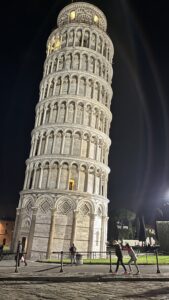 Vytknul jsem si za cíl profrčet ještě tu noc Rakouskem a přespat někde v Itálii. To se nám zadařilo a na blind jsme chvíli po půlnoci našli supr místo kousek od sjezdu z dálnice u oblíbené raftingové řeky Felly. Ráno natrháme misku šípků (v tu chvíli ještě ani netušíme, jak moc se vitamín C bude hodit - Markéta se totiž rozhodla trip zahájit virózou) a pokračujeme v krasojízdě. Z Livorna chceme, jako vždy, vyplout nočním trajektem a tak máme dost času na zástavku u šikmé věže v Pise. Stejně jako všichni ostatní okolo zkoušíme na fotce propojit perspektivy a věž podepřít (hahaha), ale pořád nám někdo leze do záběru a navíc nám to stejně nějak nejde, tak radši mizíme než ta věž spadne.